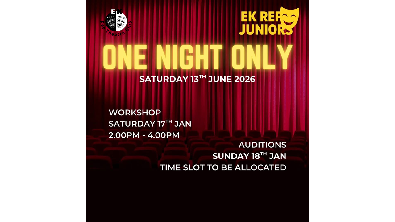 We are excited to announce we are launching something new! Following our fabulous Pantomime The Wizard of Oz, we would like to announce EK Rep Juniors, who will perform One Night Only a musical theatre showcase on Saturday 13th June!